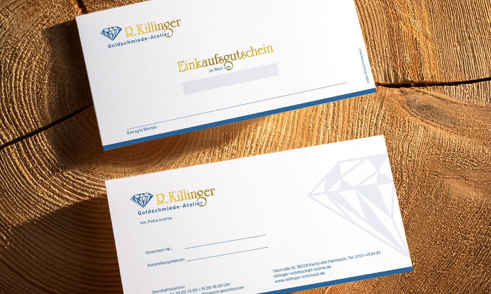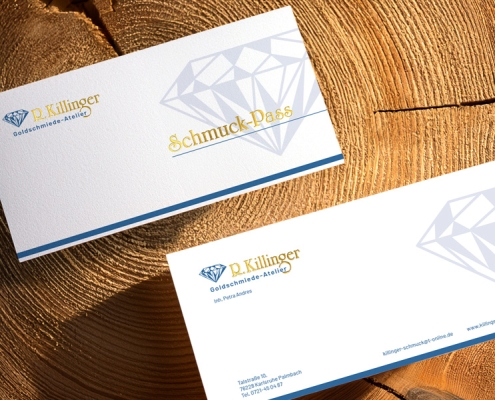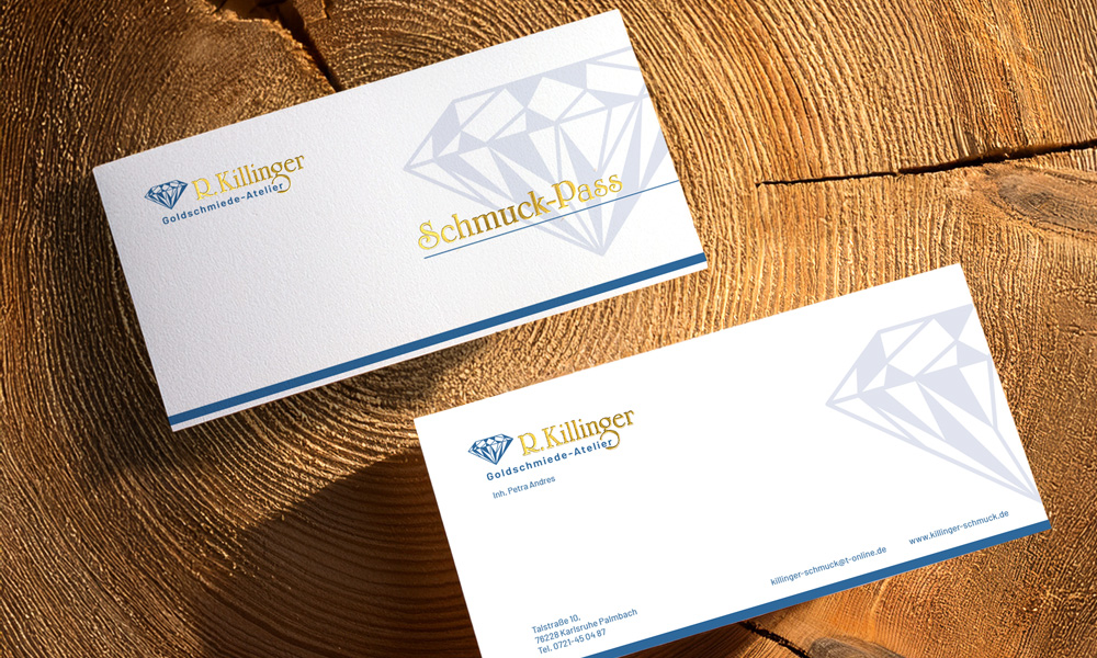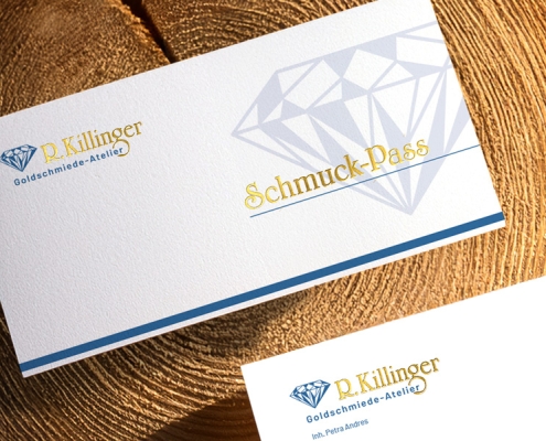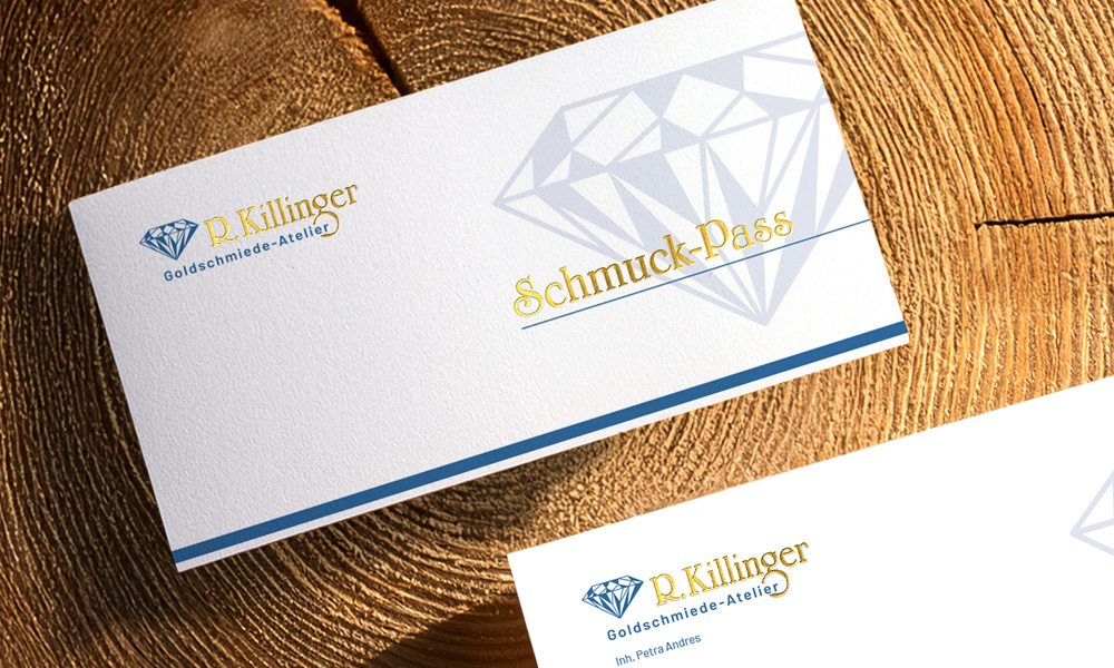 ReDesign des bestehenden Logos und Gestaltung von Visitenkarten für ein Goldschmiede-Atelier.