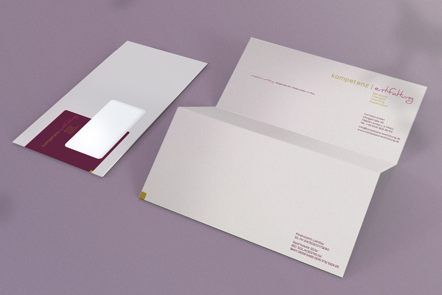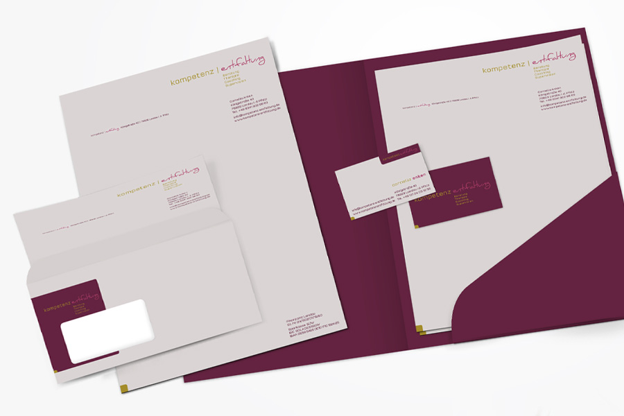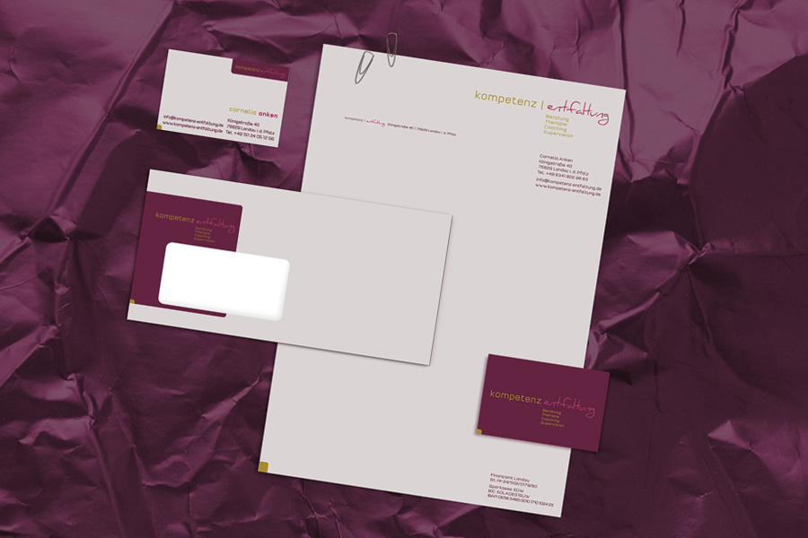 Von der Logoentwicklung über den Eröffnungsflyer, Briefbogen, Visitenkarte und Firmenschildern durfte ich für die Psychologische Praxis für Kompetenz-Entfaltung die Drucksachen gestalten.
